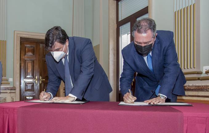 Las ciudades de Huelva y Sevilla han sellado esta tarde en el Ayuntamiento onubense una alianza estratégica con los agentes económicos para promover el Corredor de Alta Velocidad Andalucía-Algarve, instando al Gobierno autonómico a solicitar la inclusión de la línea Sevilla-Huelva-Faro en los fondos europeos Next Generation para que esta infraestructura sea una realidad en el menor tiempo posible, aprovechando que la Junta de Andalucía preside actualmente la Eurorregión.
