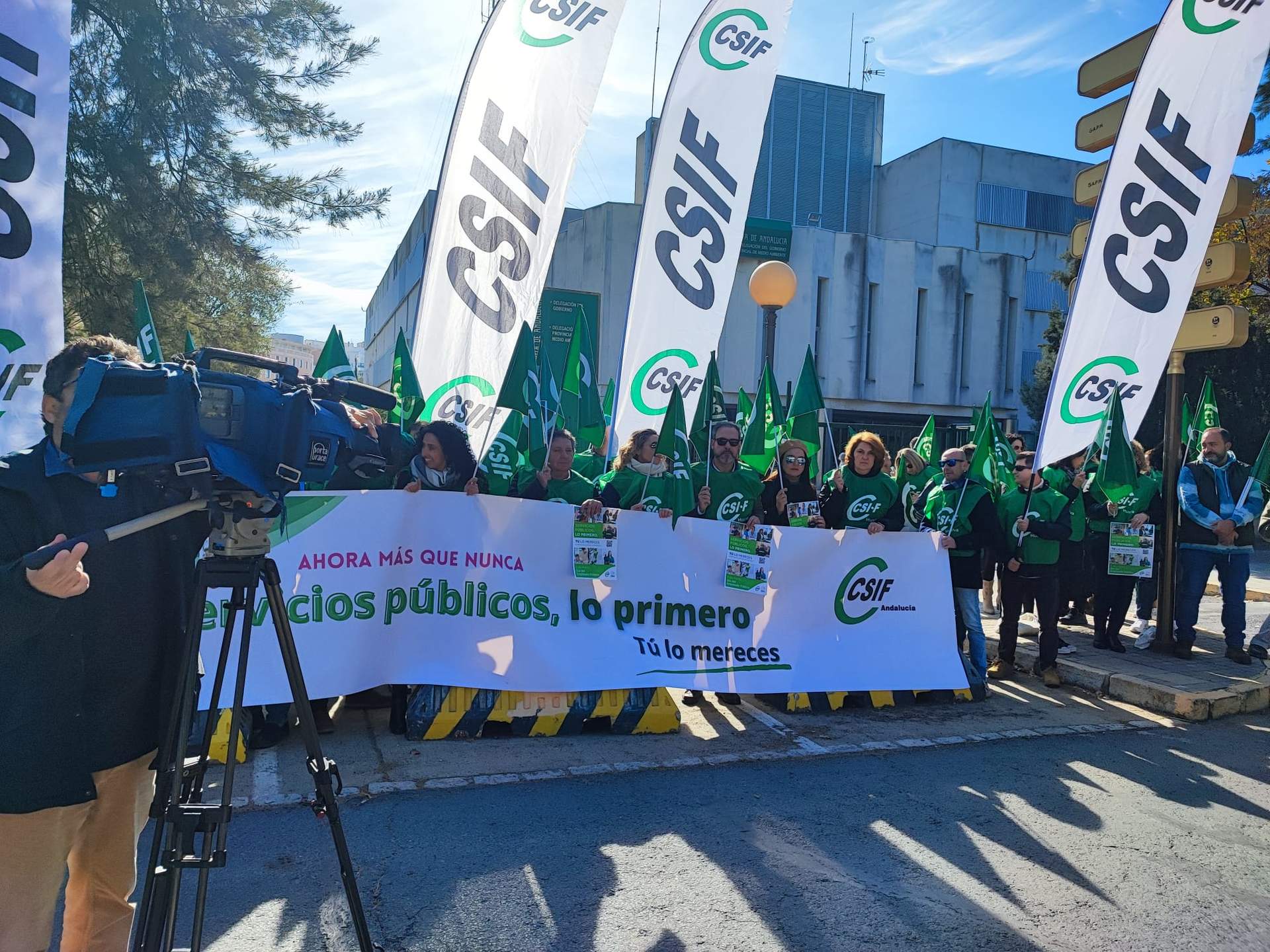 Dichas movilizaciones se han celebrado simultáneamente en todas las delegaciones del Gobierno de la Junta de Andalucía contra el deterioro de los servicios públicos en la comunidad autónoma y las dificultades a las que se enfrentan a diario los trabajadores y trabajadoras que hacen posible su prestación.
