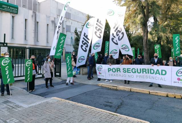 El sindicato CSIF ha reclamado hoy en una concentración de protesta el cumplimiento del pacto que regula de forma transitoria la modalidad laboral no presencial para el personal del sector público andaluz mientras dure la crisis de la Covid-19. La central sindical ha cifrado en más de 18.000 los trabajadores afectados en la provincia de Huelva en los sectores de Administración General de la Junta de Andalucía, sanidad, educación, justicia y otros entes dependientes de la Administración autonómica.