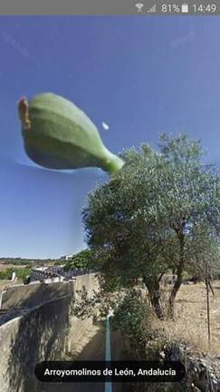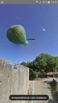 Un usuario de Facebook ha compartido unas curiosas instantáneas en su perfil en las que se puede observar "una breva voladora" en Arroyomolinos de León. "Curiosidades del callejero Google", destaca el autor de la publicación.