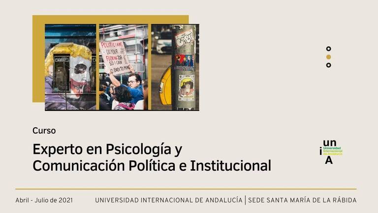 La Universidad Internacional de Andalucía ha abierto el plazo de matrícula del Curso de Experto en Psicología y comunicación política e institucional, una propuesta formativa que conecta las últimas tendencias de comunicación con la propia evolución de los distintos públicos. Impartido en modalidad virtual, y con posibilidad de ayuda para la matrícula, el título se desarrollará entre el 12 de abril y el 12 de julio de 2021.