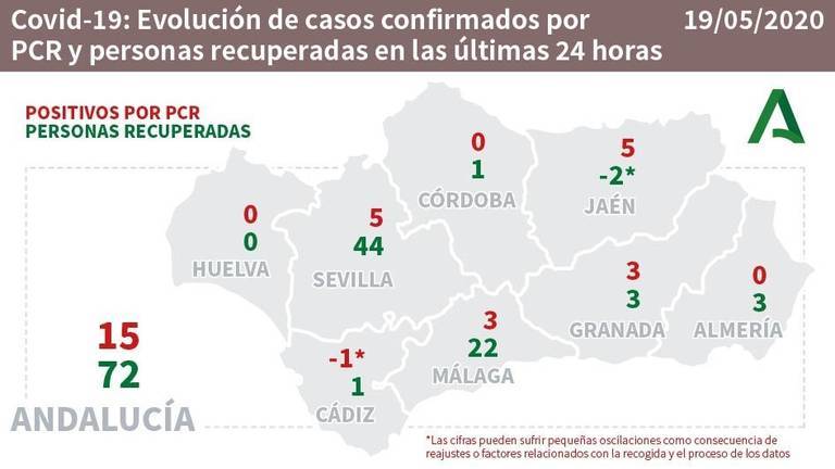 En total, Andalucía suma 12.471 casos positivos confirmados por PCR desde el inicio de la pandemia, 13 más en 24 horas, cifra algo por encima de los ocho registrados el lunes pero muy inferior a los 30 del domingo.
