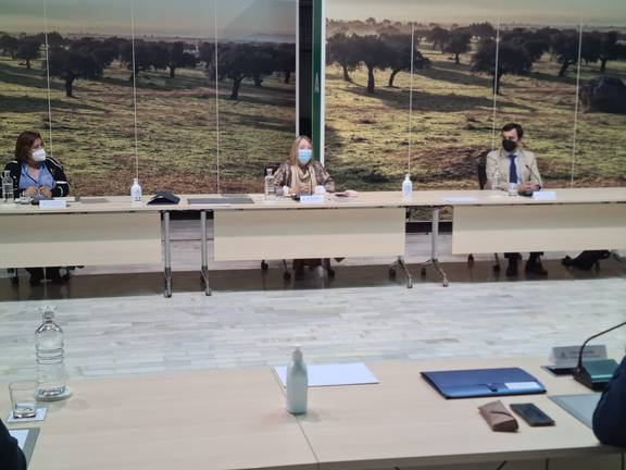 La directora general de la sociedad mercantil estatal Aguas de las Cuencas de España (ACUAES), Mª Rosa Cobo, y la consejera de Agricultura, Ganadería, Pesca y Desarrollo Sostenible de la Junta de Andalucía, Carmen Crespo, han firmado hoy los convenios de colaboración que permitirán destinar 18,5 millones de euros a actuaciones de mejora y ampliación de varios sistemas de saneamiento y depuración de la provincia de Huelva.