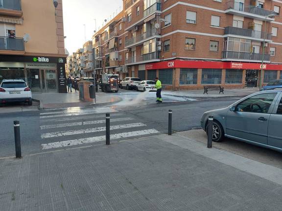 Los servicios municipales de limpieza se han empleado a fondo para desincrustar la pintura del suelo.