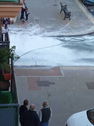 Un derrame fortuito tiñe de blanco la calle Dulce Nombre de María