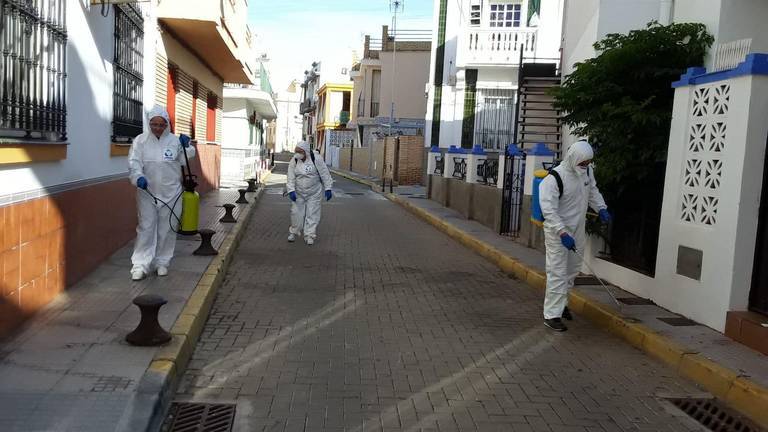 El Ayuntamiento de Punta Umbría también ha incrementado el personal de limpieza dedicado al plan especial de fumigación y desinfección para afrontar con mayor garantía la desescalada en el pueblo.