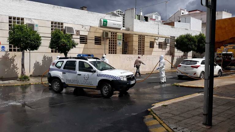 El dispositivo para la prevención y extinción de incendios forestales (Infoca) continúa con sus labores de desinfección contra el coronavirus en espacios públicos que se consideran sensibles, como centros de salud, residencias de mayores, mercados de abastos, estaciones de autobuses, jefaturas de Policía Local y cuarteles de la Guardia Civil.