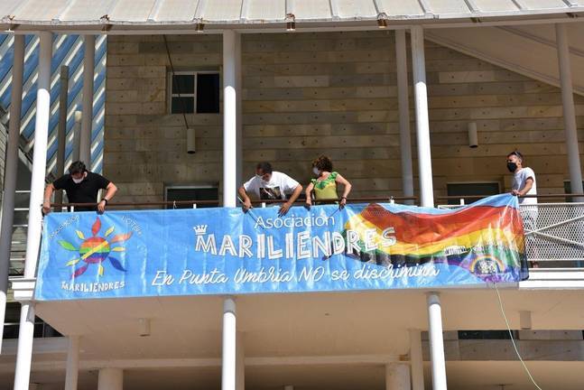 Punta Umbría pertenece a la Red de Municipios Orgullosos y es el sexto año que realiza un acto de apoyo institucional al colectivo. En otras ocasiones la bandera arcoíris fue izada, cuestión que no se ha podido llevar a cabo atendiendo a la reciente sentencia del Tribunal Supremo emitida el pasado 26 de mayo, en la que se declara ilegal la colocación de banderas no oficiales en edificios públicos. No obstante, se ha querido colocar estas lonas como medida de apoyo.