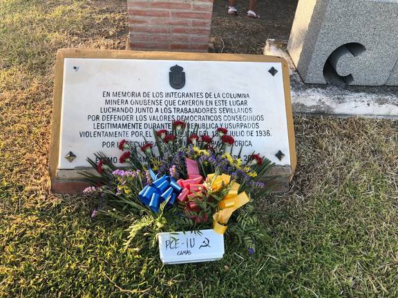 En el 85 aniversario la la Columna Minera de Riotinto también han intervenido el alcalde de Camas, las secretarias de CCOO y UGT, además de otras personas vinculadas a la Columna y a la represión franquista, se ha dado lectura a poemas y se han depositado flores en el lugar. El acto ha contado con la actuación musical de la formación ‘Trío 14 de Abril’.