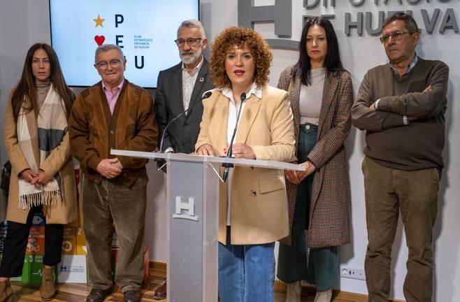 La presidenta de la Diputación, María Eugenia Limón, acompañada por el vicepresidente de la institución provincial, Juan Antonio García, y los empresarios que acudirán al Salón Gourmets han presentado hoy los detalles de la presencia onubense en, según Limón, “una cita ineludible para que los profesionales del sector onubense conozcan las tendencias, establezcan contactos comerciales y puedan posicionar sus productos tanto dentro como fuera de nuestras fronteras”.