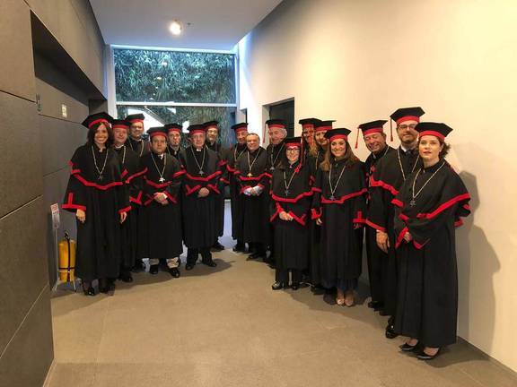 En palabras del propio Juan Carlos Ferré Olivé, le produjo una “enorme satisfacción” recibir la noticia de que le investirían de nuevo como Doctor Honoris Causa, en esta ocasión por parte de la Católica de Colombia, y se enteró hace justo un año, precisamente cuando acudió al solemne acto celebrado por esta misma institución, con motivo de la investidura del catedrático de Derecho Penal de la Universidad de Salamanca Ignacio Berdugo. “Acudí como discípulo de Ignacio Berdugo y fue en ese mismo acto cuando me informaron de que me tenían reservada esa distinción”.