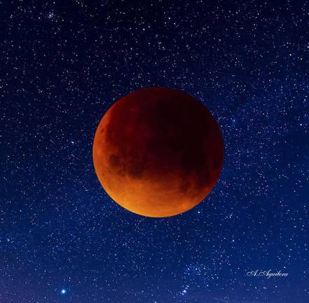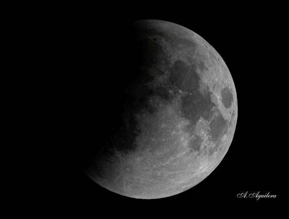 La luna no estaba completamente oscura. Y se veía con un tono rojizo. Parte de la luz solar es desviada por la atmósfera terrestre. De ahí el nombre de 'luna de sangre', tan propia de noches de insomnio, fenómenos aranormales o avistamiento de fenómenos extraños o hasta lobisomes.