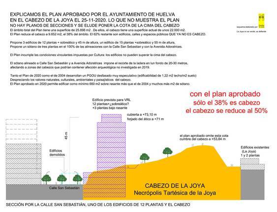 La urbanización del Cabezo de la Joya podría dirimirse en sede judicial. Ecologistas en Acción interpuesto un recurso en el Tribunal de lo Contencioso Administrativo del TSJA (Tribunal Superior de Justicia de Andalucía), y constituye un paso adicional a las movilizaciones ciudadanas y protestas de distintos colectivos sociales, profesionales, del mundo de la cultura, de la Universidad, etc., que vienen actuando de forma coordinada en contra del proyecto aprobado por el Ayuntamiento de Huelva el pasado mes de noviembre del año 2020.