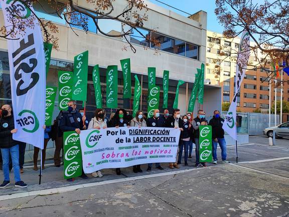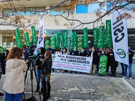 El sector de Educación del sindicato CSIF ha protagonizado este lunes una concentración reivindicativa por la dignificación de la labor docente. De hecho, el profesorado siente que su labor no es reconocida, ni desde la Administración ni por parte de la sociedad en general, en casi un 94% de los casos, según un sondeo realizado por el sindicato.