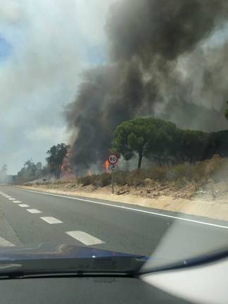 Ante las dimensiones que está cobrando el fuego la Guardia Civil ha tenido que cortar la autovía A-497, mientras que está redirigiendo el tráfico en dirección a Gibraleón para garantizar la seguridad de los conductores.