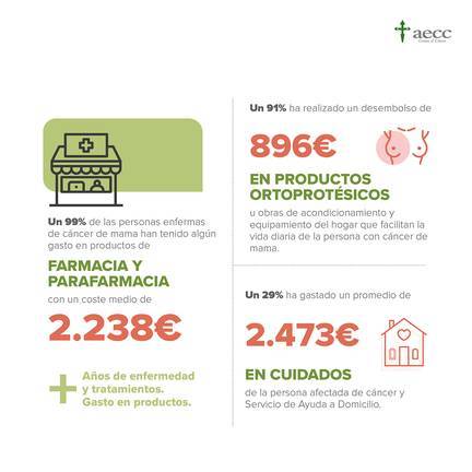 No en vano, se calcula que un diagnóstico de cáncer genera de media, entre gastos directos y pérdida de ingresos, 41.834 euros durante la enfermedad. Así, una mujer con cáncer de mama tiene unos gastos directos de 9.242 euros y una pérdida de ingresos de 32.578 euros.