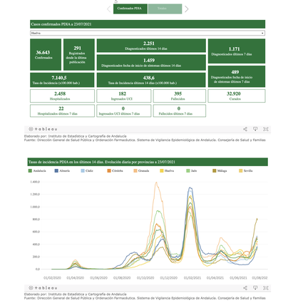 La tasa de positivos por cada 100.000 habitantes en los últimos 14 días se sitúa en 438,6. Sin embargo, a pesar de que la variante Delta se caracteriza por una alta contagiosidad entre los más jóvenes, lo cierto es que la tasa de mortalidad, quizás por afectar a personas en plenas facultades físicas, hacen que sea muy baja. En concreto, Huelva suma semanas sin nuevos decesos y sin personas ingresadas en las Unidades de Cuidados Intensivos (UCI).