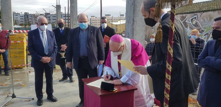 El Obispo coloca la primera piedra del nuevo templo de la parroquia Cristo Sacerdote de Huelva