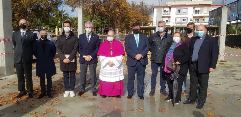 El obispo de Huelva, Santiago Gómez, ha bendecido este mediodía los terrenos y ha colocado la piedra del nuevo templo de la parroquia Cristo Sacerdote de Huelva en un acto en el que han estado presentes autoridades, encabezadas por el alcalde de Huelva, Gabriel Cruz; el párroco de Cristo Sacerdote, Andrés Vázquez; la arquitecta del proyecto, Mercedes Iglesias y miembros de la comunidad parroquial, entre otros asistentes.