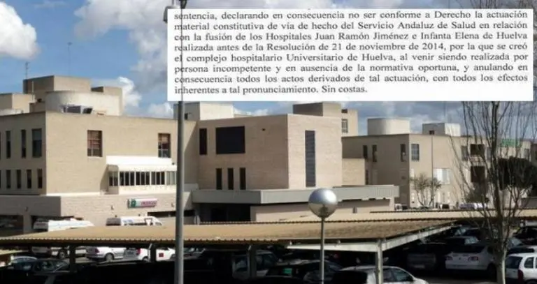 El Servicio Andaluz de Salud (SAS) decidido finalmente no presentar recurso de apelación contra la sentencia del Juzgado de lo Contencioso-Administrativo número 3 de Huelva, que dejaba sin efecto el proceso de fusión de los Hospitales Juan Ramón Jiménez e Infanta Elena al anular todas las actuaciones realizadas por el director gerente del Complejo Hospitalario, Rafael García-Vargas Machuca, según ha conocido el Sindicato de Enfermería (Satse) de Huelva.