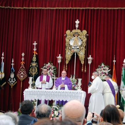 Durante la homilía el obispo señaló que “siempre que nos reunimos entorno a la mesa del Señor, a la mesa de su palabra, a la mesa de la Eucaristía nos sentimos familia y nos vemos y nos percibimos como familia de Dios, el pueblo de Dios que Cristo ha congregado y que guía y alimenta con su palabra y alimenta con su cuerpo y con su sangre. Que esa familia busca también lugares donde reunirse, lugares donde encontrarse, lugares que se convierten en signos de su propia unidad. Cuántas veces en nuestra casa, en nuestra propia familia de sangre, la casa paterna se convierte en el signo también visible de esa familia que también forman distintas generaciones. Por eso estamos en nuestra casa de la Hermandad de Emigrantes del Rocío de Huelva y nos sentimos también, primero porque estamos entorno a la mesa del Señor, pero también en esta casa, que con esfuerzo, con sacrificio, con tesón habéis conseguido terminar de construir y que en esta Eucaristía bendecimos y que también es lugar de familia, lugar para que los devotos y hermanos de la Hermandad de Emigrantes sentáis aquí y alimentar esos vínculos que nos da la fe, esos vínculos que nos da la devoción a la Santísima Virgen, ese vínculo espiritual y verdadero que nos da mirar a nuestro Simpecado y contemplar en él a la Santísima Virgen del Rocío”.