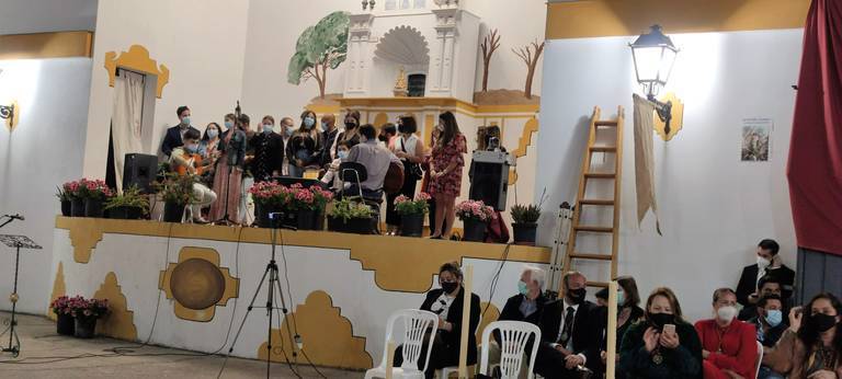 El acto religioso se desarrolló a las once de la noche y tuvo como escenario, el patio de la casa de hermandad, entrando al mismo el Simpecado con una pequeña comitiva, encabezada por el presidente y el hermano mayor de la filial rociera, Francisco José Garrido y José Antonio Ortiz, respectivamente.