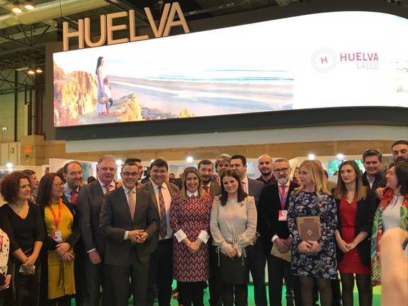 La provincia de Huelva ha desplegado en esta primera jornada de Fitur lo mejor de su patrimonio y de su historia, nuevas citas deportivas y una planta hotelera moderna y exclusiva, todo para que el viajero no pueda resistirse a visitarnos en este 2018.