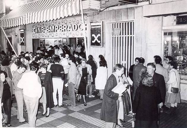 Otra instantánea de la fachada del desaparecido Cine Emperador repleta de público cuando acogía las proyecciones del Festival de Cine Iberoamericano.