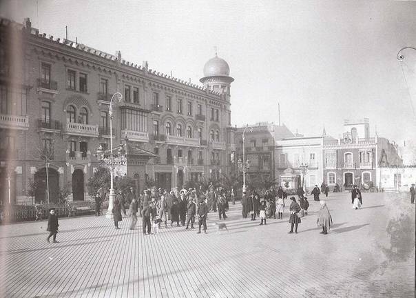 1. Plaza de las Monjas. Principios del XX. Situada en el centro del casco antiguo y equidistante de los barrios extremos: las Colonias e Isla Chica, un espacio social de encuentros, desde juegos de niños a manifestaciones. Una imagen bien distinta a la que luce hoy pero con la misma esencia como centro neurálgico de la vida y el ocio onubense.