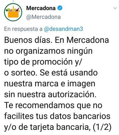 La última estafa ha llegado suplantando la imagen y los datos de la compañía Mercadona. La Policía Nacional ha advertido desde su cuenta de twitter que llega al correo y al watsapp un mensaje aparentemente enviado por Mercadona con un enlace desde el que los ciberdelincuentes tratan de usurpar información bancaria. El gancho que ofrecen es un supuesto cupón regalo de 75 euros. Las autoridades policiales piden que no se abran este tipo de mensaje y, sobre todo, que no se reenvíen para no dar pábulo a la estafa masiva.