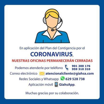 El servicio telefónico, disponible indistintamente a través de las líneas 901 200 176 y 959 310 310, sigue siendo junto con el correo electrónico atencionalcliente@giahsa.com un puntal esencial en la disponibilidad de Giahsa hacia sus usuarios. Esta crisis originada por la pandemia del Coronavirus ha puesto a prueba la capacidad de Giahsa, al haber logrado conjugar el sistema de call center con la necesidad de fomentar el teletrabajo, de manera que desde el primer momento todos los operadores del servicio han atendiendo más de 2.500 llamadas desde sus casas con plena operatividad.