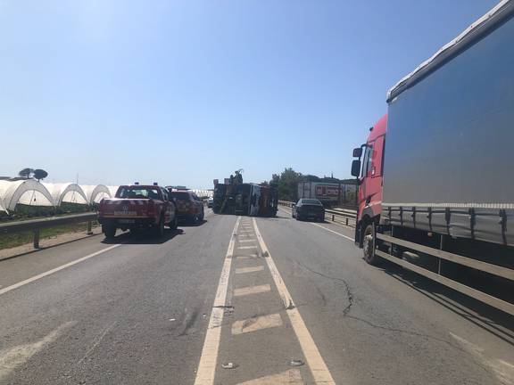 El suceso ha tenido lugar a las 10.48 horas en el kilómetro 19 de la carretera A-494, poco después de una rotonda. El conductor iba solo en el camión, al que precedía otro vehículo del parque de San Juan con dos bomberos.