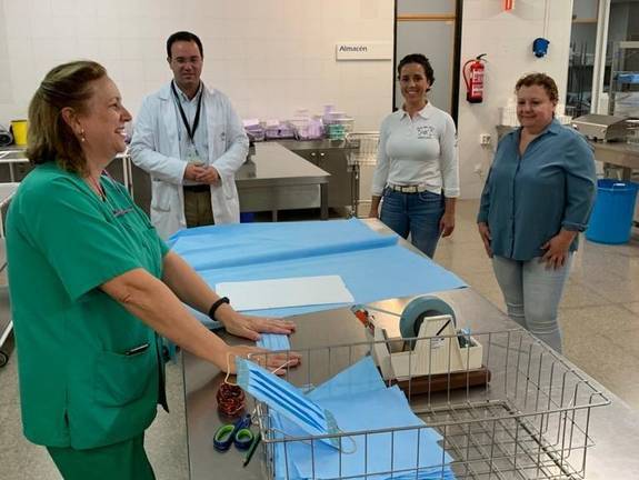 Las mascarillas propias son elaboradas con papel tejido sin tejer, una material habitual en los centros sanitarios para el envoltorio de material quirúrgico y se cortan siguiendo un patrón confeccionado por los profesionales de Esterilización del centro. Se le añaden cintas o gomillas y una tira de hilo de cobre para fijarlo a la nariz. Posteriormente se introducen en un autoclave para someterlas a esterilización por vapor a 120º para cerrar los poros del tejido y garantizar que las gotitas al hablar, toser o estornudar el paciente no traspasan.