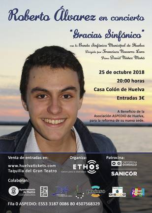 El joven Roberto Álvarez ofrecerá el próximo 25 de octubre, en la Casa Colón de Huelva, el primer concierto sinfónico de un joven con autismo, único por las características del mismo. Cantará su disco ‘Gracias’ y estará acompañado por la Banda Sinfónica Municipal de Huelva, dirigida por el maestro Francisco Navarro Lara. Además, habrá algunas colaboraciones muy especiales.
