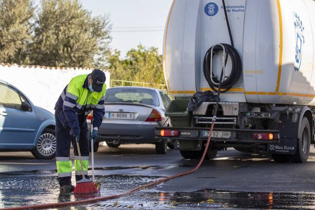 Huelva usa 188.000 litros de agua y desinfectante al día para limpiar las calles