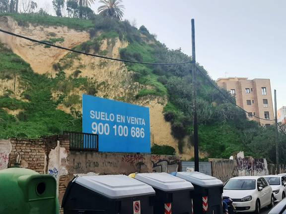 Mesa de la Ría observa visos de ilegalidad en la instalación en el cabezo de la calle Aragón de grandes carteles de venta de suelo. La zona ya sufrió una gran derrumbe con víctimas en 1956.