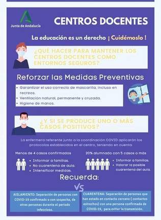 De forma general en la comunidad andaluza, el 98,49 % de los centros educativos están libres de coronavirus.