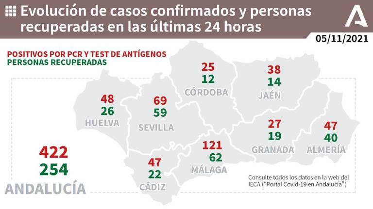 Hoy viernes Andalucía anota 422 nuevos casos de coronavirus y sitúa su tasa de incidencia acumulada en 34,60. Y Huelva suma nada menos que 48 nuevos casos, el mayor crecimiento en las últimas semanas.