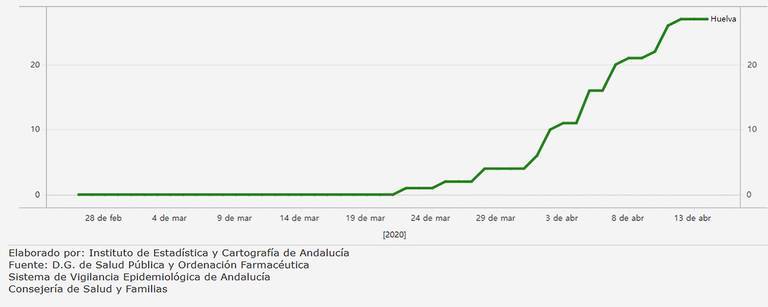 Desde el pasado 4 de abril, los nuevo contagios no han superado la decena por día. Una cifra que nada tiene que ver con los 37 nuevos contagios que se confirmaron el día 3 (y se hicieron público el 4). Las cifras indican que Huelva, de momento, ha conseguido frenar la curva y se mantiene como la provincia española con menos casos en términos absolutos y la tercera con respecto al número de habitantes.