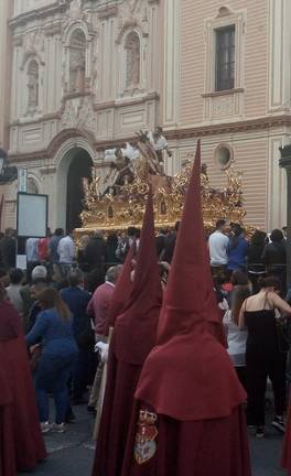 Por su parte, la Hermandad de Los Judios, la última en hacer acto de presencia en las calles onubenses, ha partido de la Catedral de La Merced, tal y como tenía previsto a las 20:30 horas. Las tallas del Cristo del Buen Viaje, el Cristo de las Cadenas y María Santísima de los Dolores han procesionado acompañados por la Banda de CC. y TT. Stmo Cristo de la Victoria de León en el misterio, la Banda de CC. y TT. Nuestro Padre Jesús del Gran Poder de Coria del Río (Cristo) y de la Banda Municipal de Música Nuestra Señora del Rosario de El Cuervo (palio). Junto a ellos, un desfile de túnicas rojas y blancas han completado un cortejo que ha comenzado desde el Paseo Independencia.