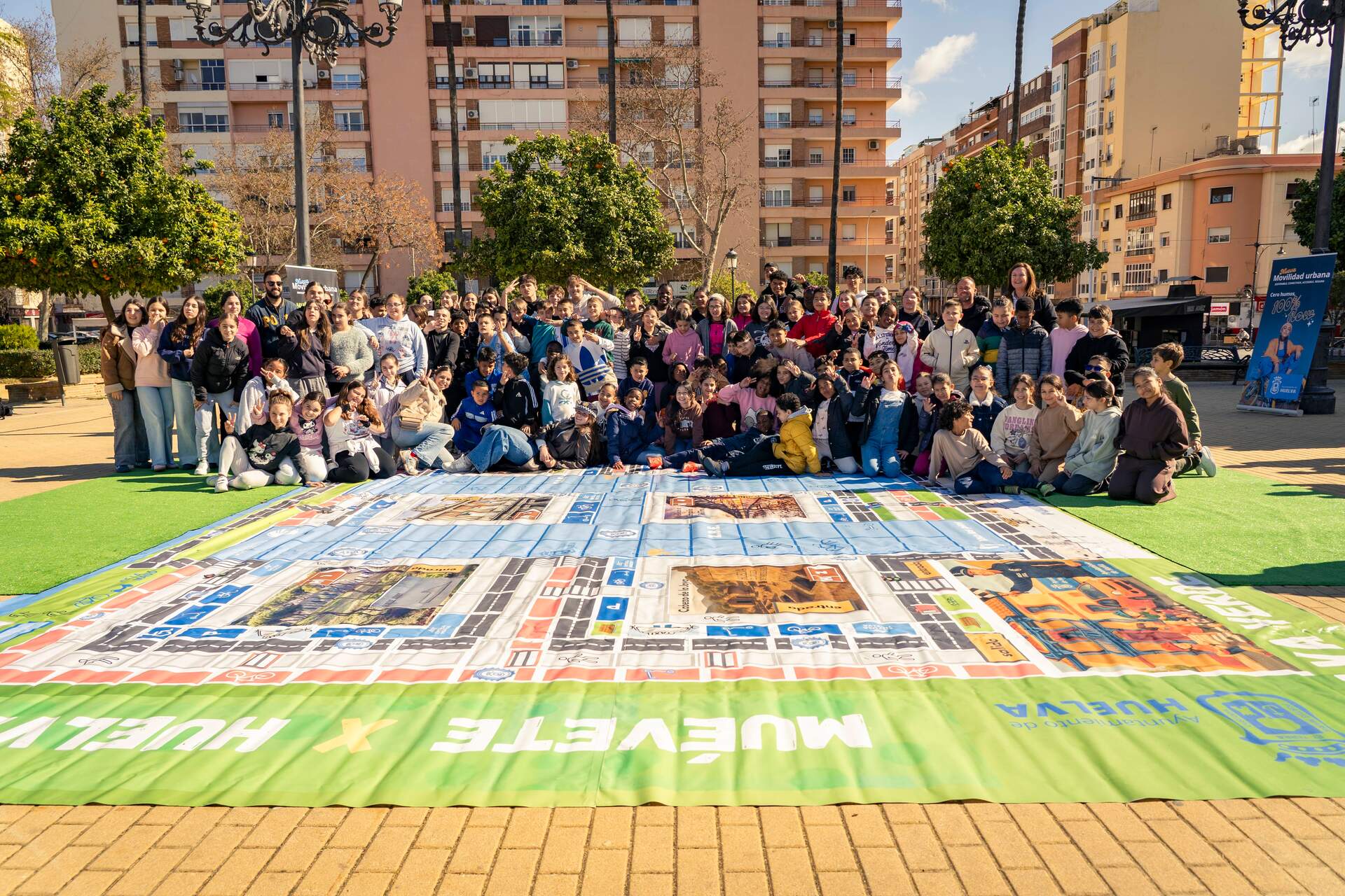 Para acercar el proyecto a los escolares, el Ayuntamiento ha iniciado también jornadas de presentación en distintos barrios de la ciudad mediante un tablero gigante en el que los propios alumnos se convierten en fichas del juego. La primera actividad se ha celebrado en la Plaza del Antiguo Estadio, en la barriada de Isla Chica, con la participación de estudiantes de los colegios Tartessos y Reyes Católicos.