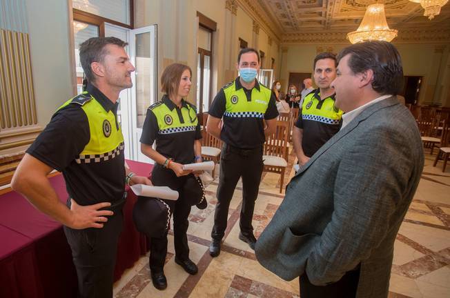 Los agentes, que desde mañana comenzarán a prestar servicio, se incorporan a la Policía Local a través de una convocatoria de movilidad, y proceden de los cuerpos de Lepe, Almonte, Ayamonte, Punta Umbría, San Juan del Puerto y la Puebla de Guzmán.