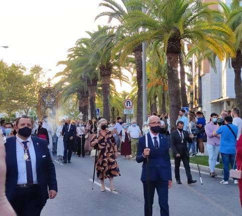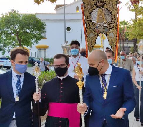 Antes de iniciar el traslado el presidente de la filial rociera Francisco José Garrido señaló que “este día era posible a que la situación sanitaria ha mejorado”, mientras que el hermano mayor José Antonio Ortiz Morano pidió “la ayuda y protección para los damnificados por las inundaciones de Lepe”, recordando que hoy se inicia por la hermandad una campaña de recogida de enseres, comida para bebés, artículos de aseo, alimentos no perecederos, material escolar, menaje, droguería.