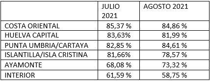 Si bien las previsiones que desde el sector se manejaban a principios del mes de julio apuntaban a una ocupación de casi un 72%, las reservas de última hora y la ralentización del ritmo de cancelaciones han posibilitado cerrar este mes de julio con una ocupación que se sitúa de media en la provincia en un 80, 92%, según acaba de anunciar la Asociación Provincial de Hoteles de Huelva