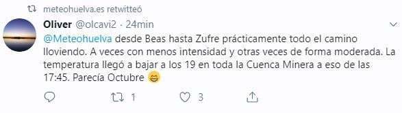 Por no hablar de la Sierra de Huelva, donde el mercurio no acaba de pasar hoy de los 22 e incluso se han producido precipitaciones dispersas. Y las mínimas, han tocado suelo con 12 grados. Más que fresquito.