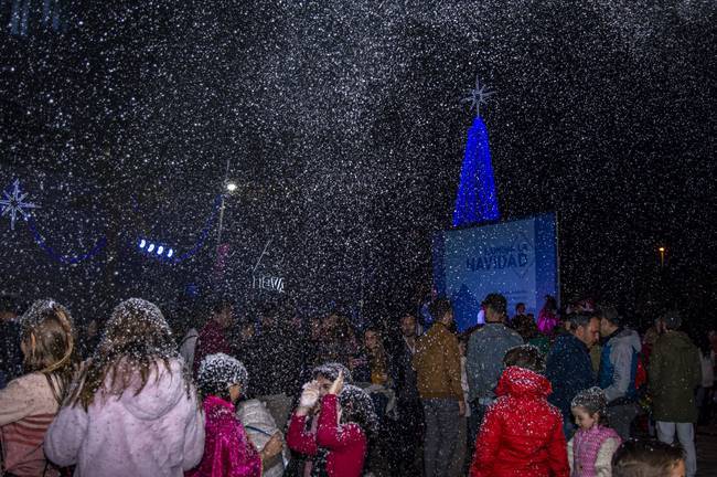 Este primer acto de inauguración, ‘Ilumina la Navidad’, el pequeño Hugo ha sido el encargado de accionar el pulsador que ha llenado de color a Aqualon, con colores azul y blanco para la fachada y el gran árbol navideño que un año más se coloca en el centro de la plaza.
