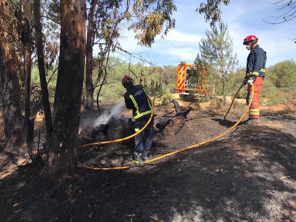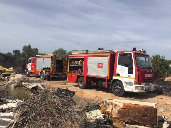 El lugar del fuego se ubicaba en el vertedero de la urbanización Río Gurt, a donde acudieron cuatro efectivos del Consorcio Provincial de Bomberos de Huelva
