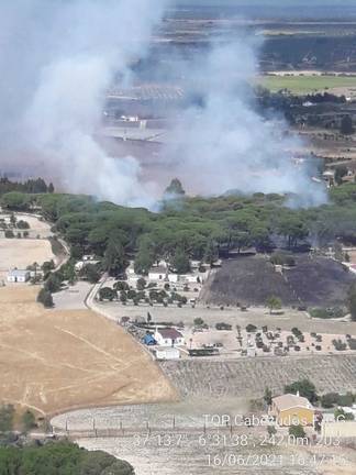 Pasadas las 16:00 de la tarde, otro incendio se originó en esta ocasión en el paraje Venta la Piedra de Almonte, un fuego ya también controlado desde aproximadamente las 18:00 por un helicóptero de transporte y extinción, un técnico de operaciones, un agente de medio ambiente, dos grupos de bomberos forestales y dos camiones autobombas.