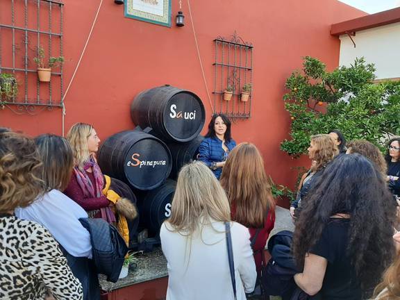 Tras la celebración del taller, las asistentes han realizado una visita a las Bodegas Sauci, en Bollullos Par del Condado, empresa de las más veteranas del sector dedicada a la elaboración y crianza de vinos generosos y blancos e integrada en la Denominación de Origen Condado de Huelva. Además, es una de las pocas bodegas andaluzas regentada por mujeres, cuyas responsables -Montserrat y Begoña Sauci- son empresarias del proyecto.