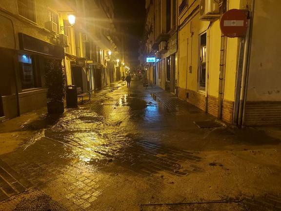 El agua salía a raudales de la tubería que había colapsado e inundado la zona, saliendo por la calle Miguel Redondo, esquina con calle La Paz.